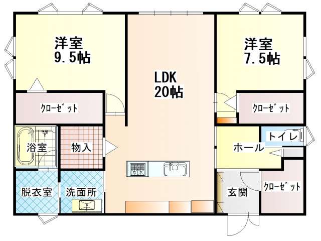 | 詳細間取 | 2LDK (1階:洋9.5帖×1、1階:洋7.5帖×1、LDK20帖) | ||